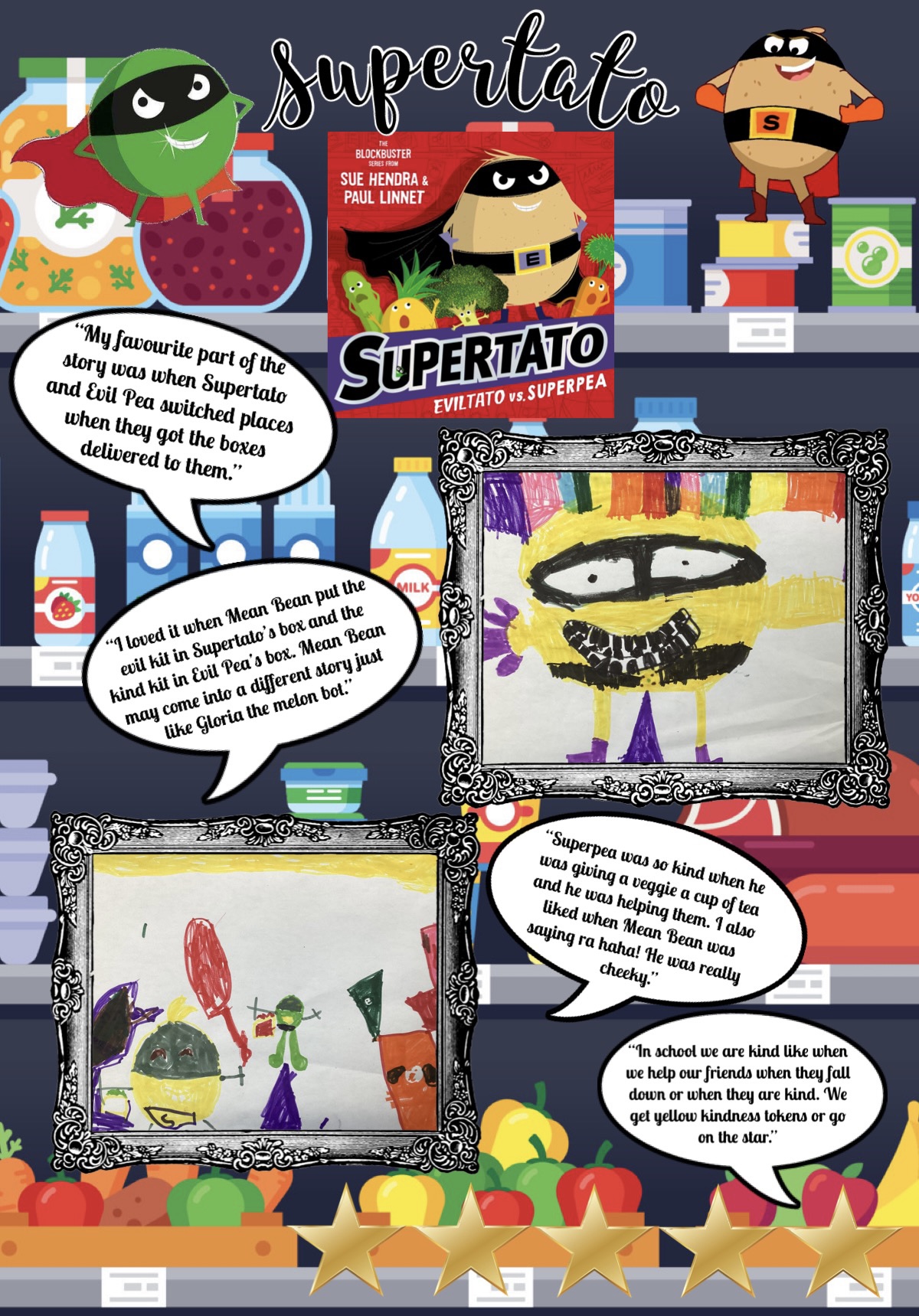 Sue and Paul were so impressed with our reviews they sent us an early release of their brand-new book, Supertato- Eviltato vs. Superpea to review.